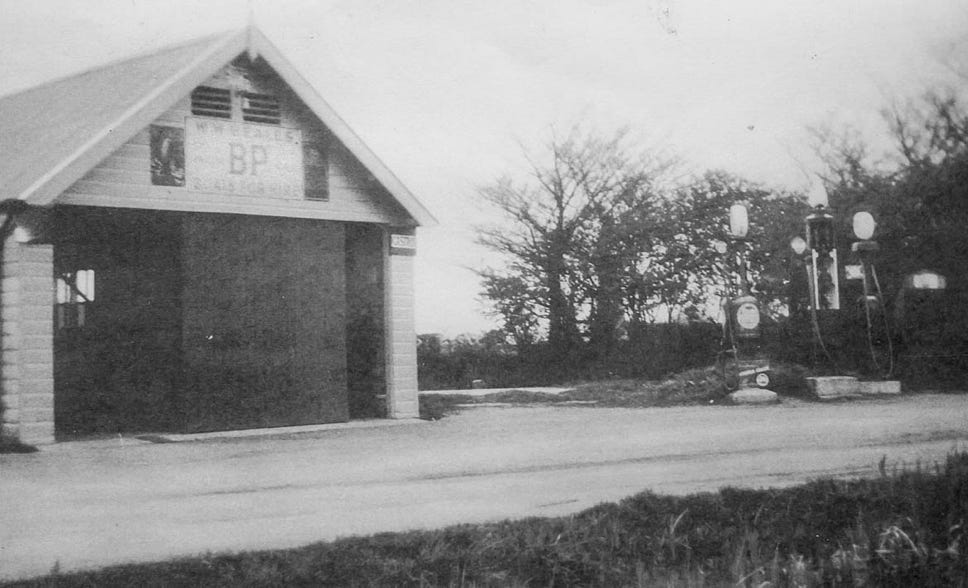 Waldo Beale’s Garage. You can just make out the petrol pumps to the right of this early photo.