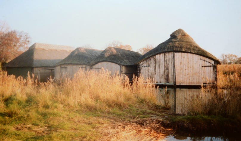 Some of Hickling’s thatched boathouses, where Brian used to go to catch the mussels.