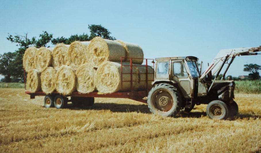 Harry is driving this load of straw out of the field at Eastfield Farm, photographed by George Newman in 1990