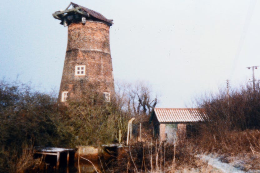 Stubb Mill - still without its sails - photographed in 1987 by George Newman