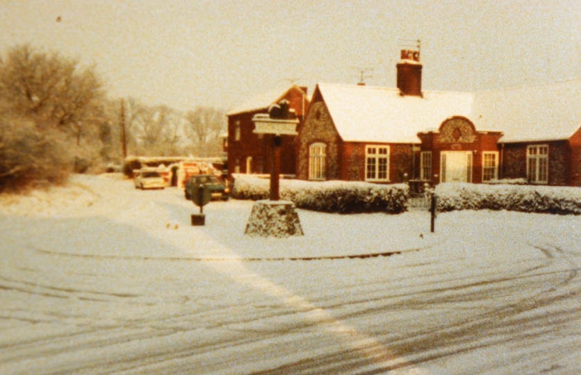 The doctor’s surgery used to be in this building at the corner of Heath Road and The Green. This photo is undated; it was taken by George Newman, probably in the 1980s.