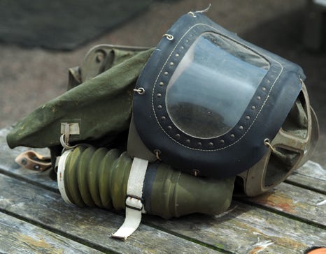 The gas masks made for babies were cumbersome to say the least! They were designed to completely envelop the baby!