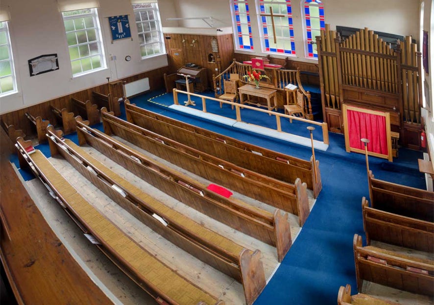 In December 1881, a gale caused serious damage to the New Chapel, and after discussion about repair or rebuild, Memorial Foundation Stones were laid for the present Chapel on 29th May 1882. On 29th November that year, the Chapel opened, at a final cost of 499 pounds, ten shillings and eleven pence.