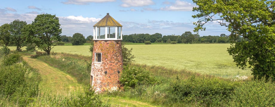 Originally a drainage mill, this became known as Roland Green’s Mill: he was a well known bird artist who put the distinctive windowed top on the mill to use it as a studio when he was painting his friezes for Whiteslea Lodge.
