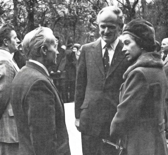 Right: Norman at far left of picture waiting to meet the Queen at Ranworth. In this picture the Queen is talking to Arthur Beales.