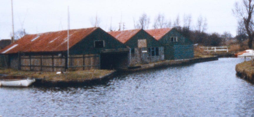 A photo of Waldo Beales’s boatyard taken by George Newman in 1987. Sadly no longer in its prime…