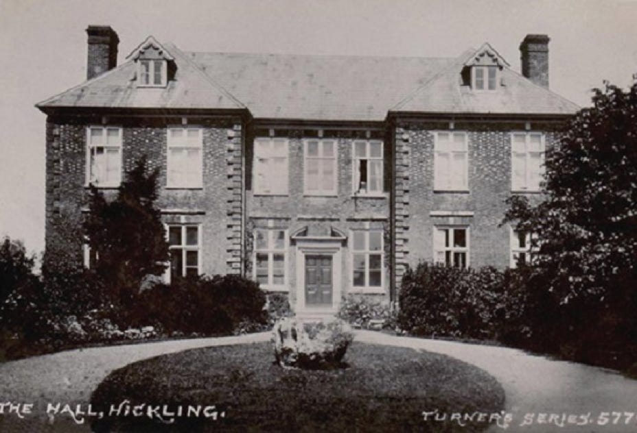 Hickling Hall, with cellars full of toads, was destroyed by fire on Boxing Day 2014. Click here to hear the story of the fire.